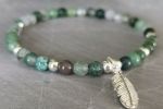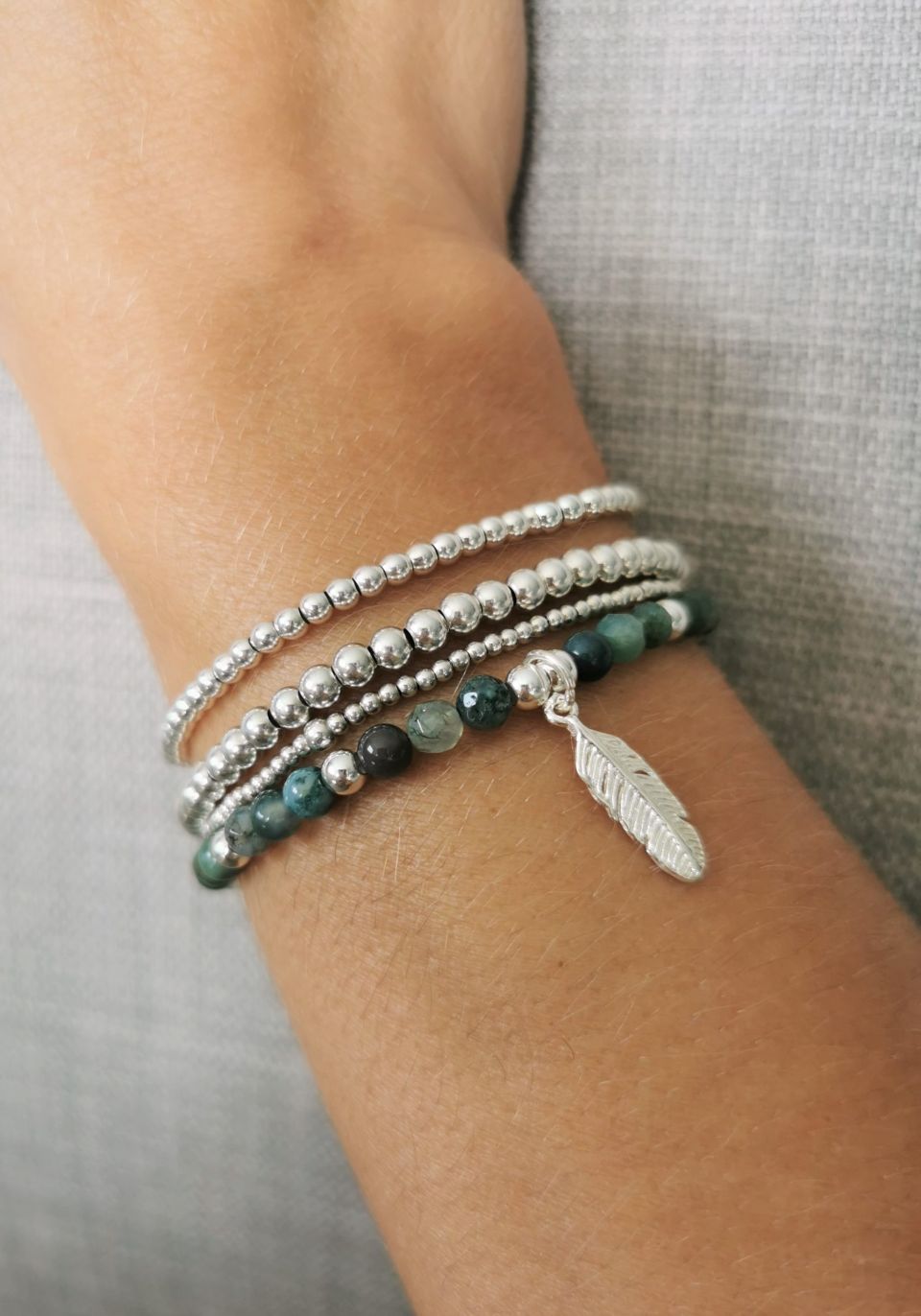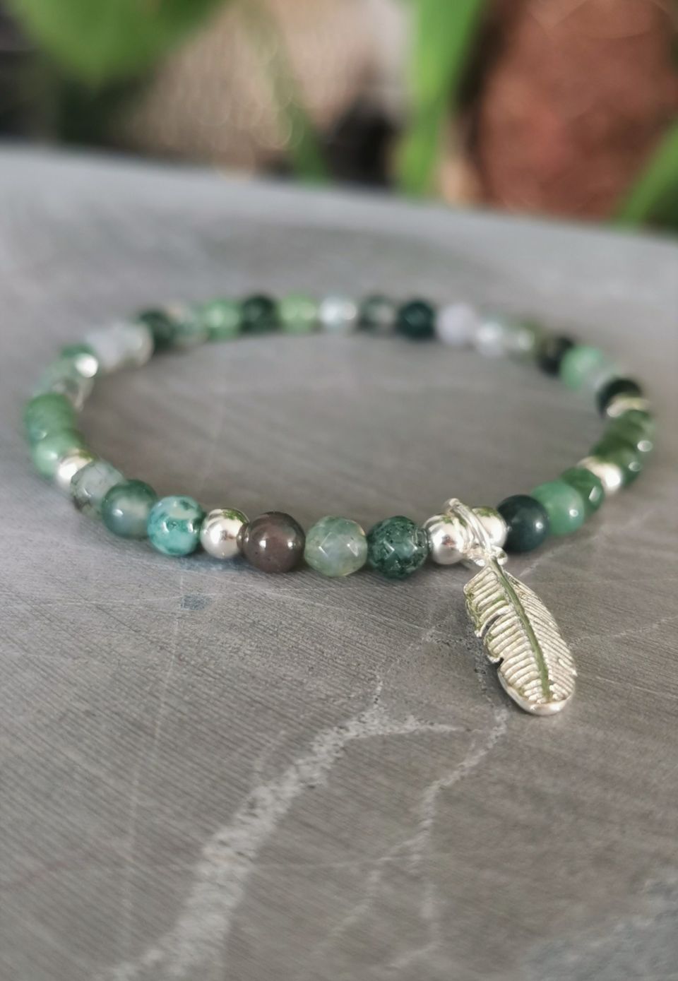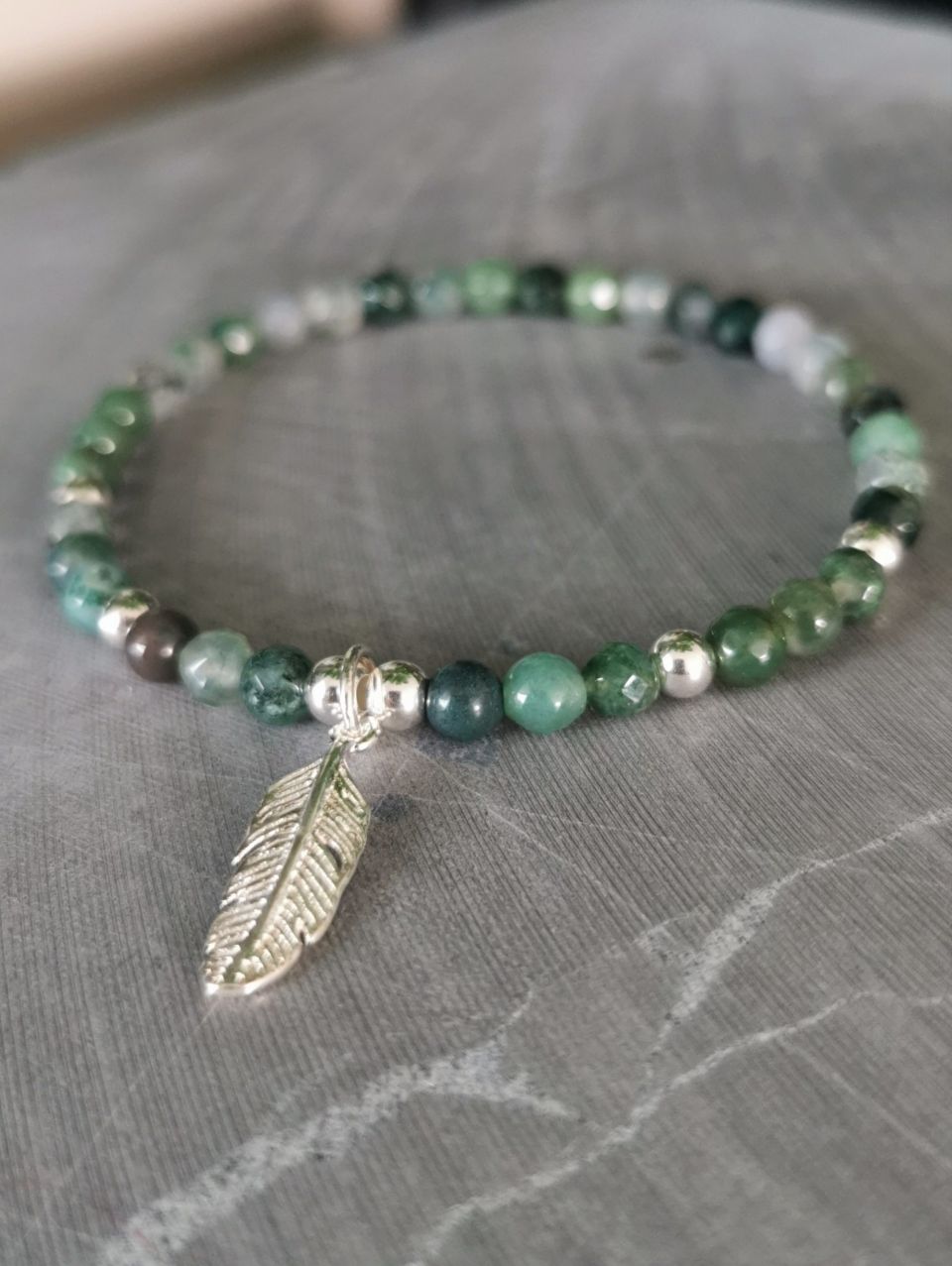 • Matériaux : Pierres naturelles en agate mousse, perles arg 925 & plume en arg 925