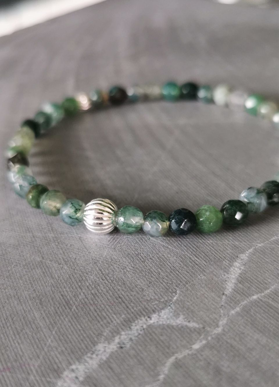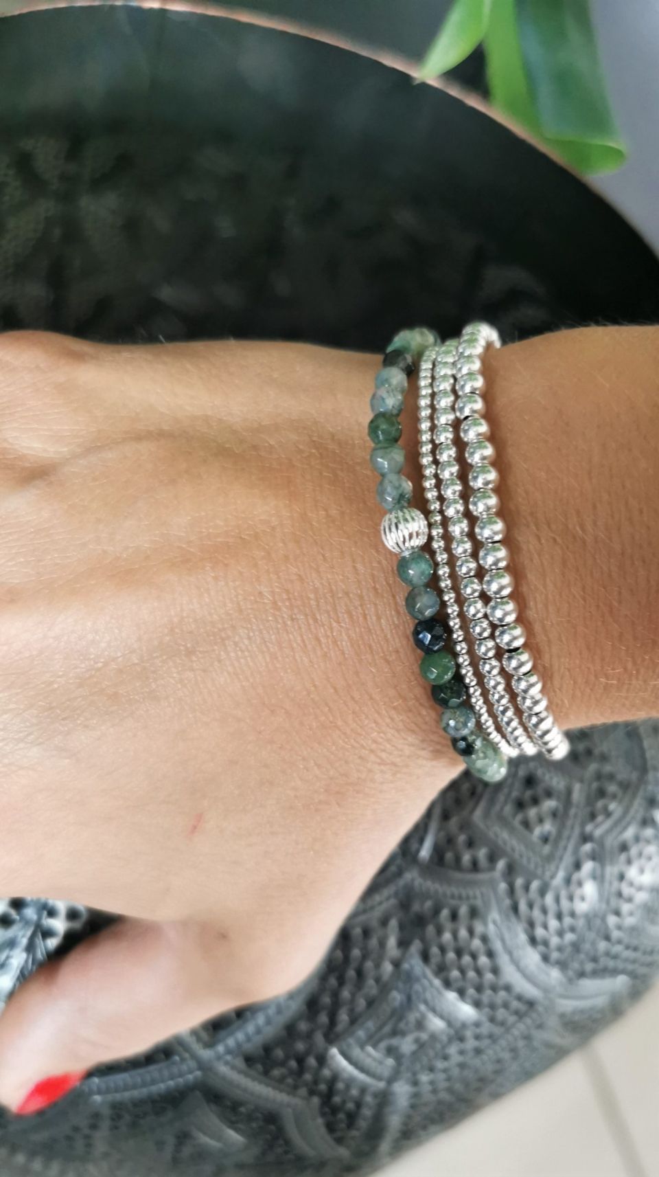 - Matériaux : Pierres naturelles en agate mousse, perles striées en arg 925