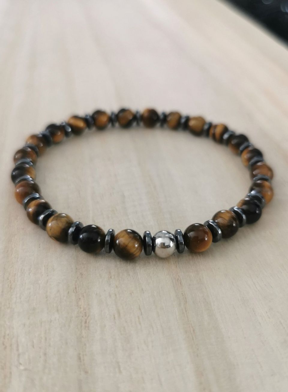 - Matériaux : pierres naturelles oeil de tigre & rondelles en hématite grise foncée
