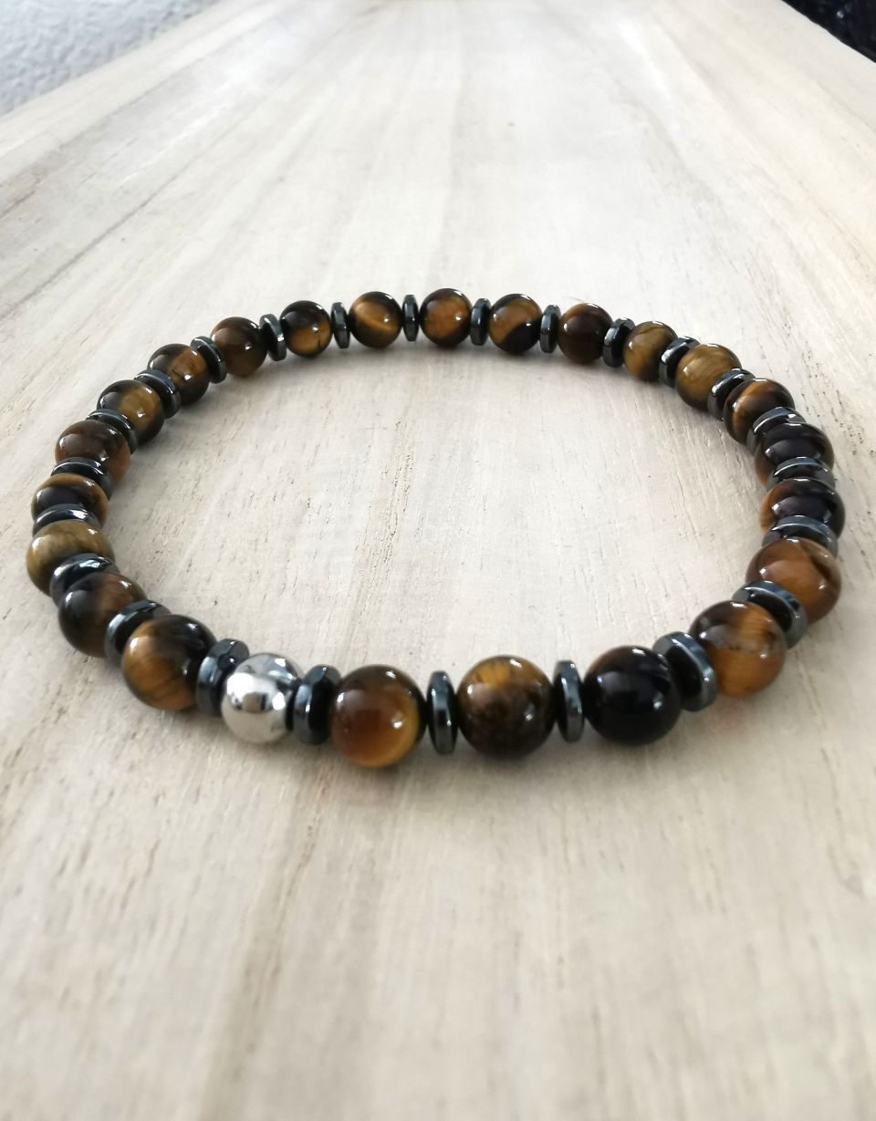 - Matériaux : pierres naturelles oeil de tigre & rondelles en hématite grise foncée