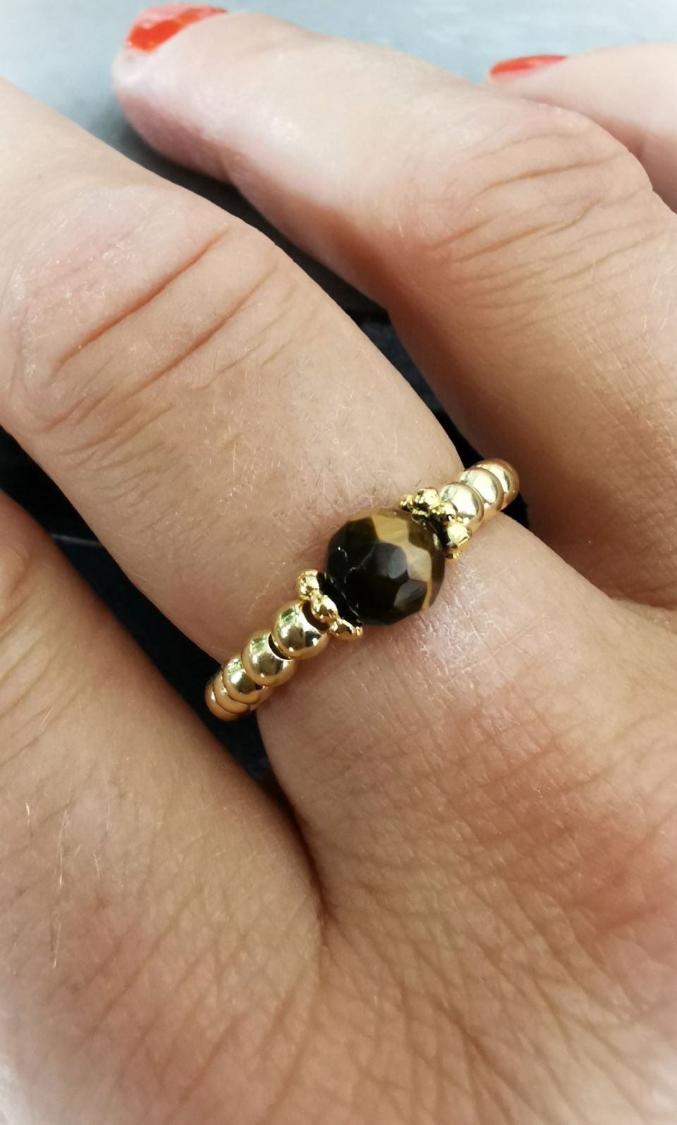 - Matériaux : Perles en argent 925 plaqué doré + rondelles forme fleurs& oeil de tigre facettée 6mm
