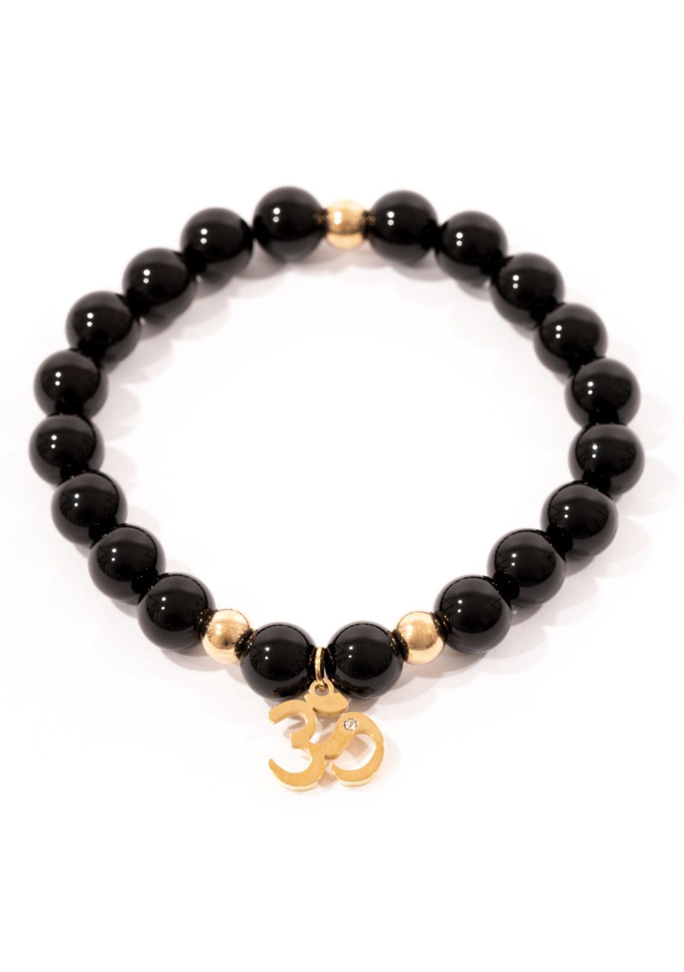 - Matériaux : pierres naturelles onyx noir + symbole OM inox doré jaune