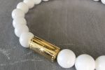 - Matériaux : Pierre de coquillage blanches & cylindre doré décoré d’une étoile en inox