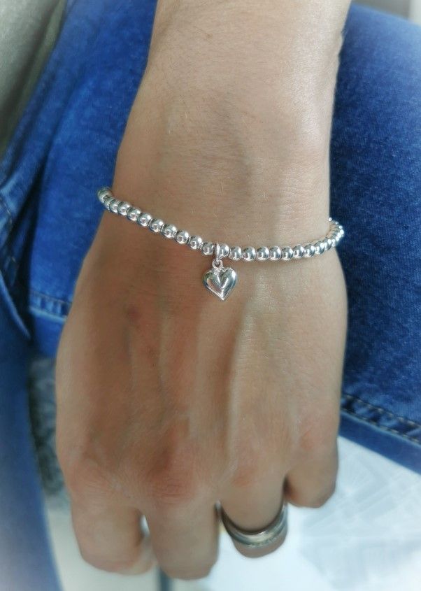 - Matériaux : Perles en argent 925 & pendentif « coeur » plein en argent 925