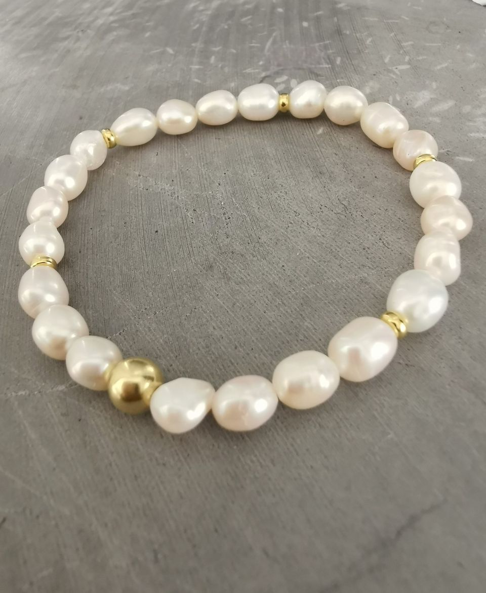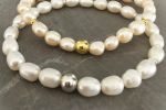 - Matériaux : Perles d’eau douce couleur blanche-crème, forme olive & apprêts argentés ou dorés
